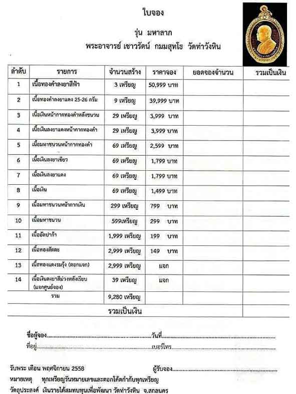 [[[เปิดจอง]]]พระอาจารย์ เชาวรัตน์ (รุ่น มหาลาภ) วัดท่าวังหิน