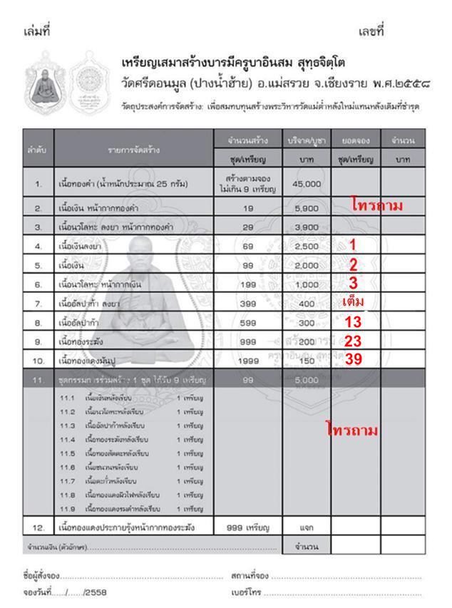 หัวข้อกระทู้ : เปิดจองเหรียญเสมาสร้างบารมี ครูบาอินสม สุขจิตโต วัดศรีดอนมูล (ปางน้ำฮ้าย) จ.เชียงราย ราคาวัดค่ะ