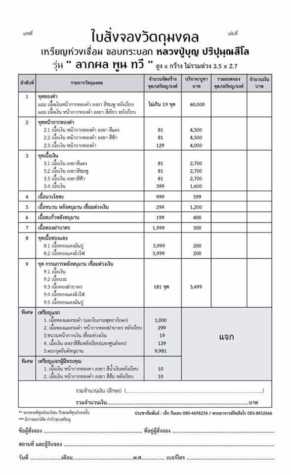 *** ราคาจองทุกรายการ+ค่าจัดส่ง 100/ท่าน