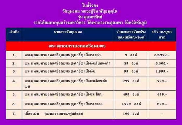 รายการที่ 6 พระพุทธมหามงคลศรีอุดมพร(อุดกริ่ง) เนื้อทองแดงองค์ละ 299 บาทมี 16 องค์