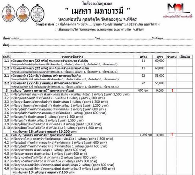 กำหนดรับ : วัตถุมงคล ประมาณเดือนตุลาคม เป็นต้นไป