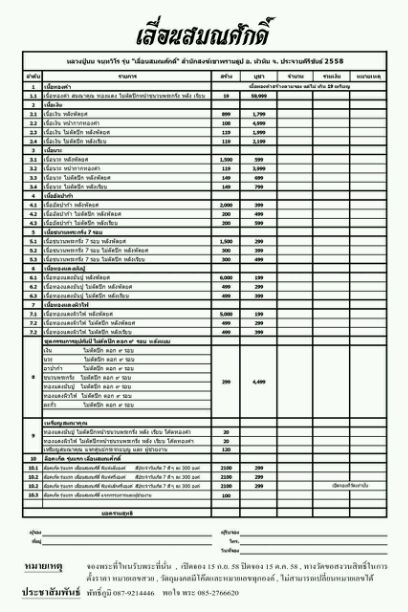 ศูนย์จองลำดับที่34 เบ็นซ์ สระบุรี ครับ รายการมีดังนี้ครับ