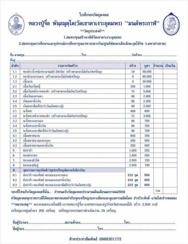 ราคาจองตามใบจอง รายการอื่นๆๆเต็ม