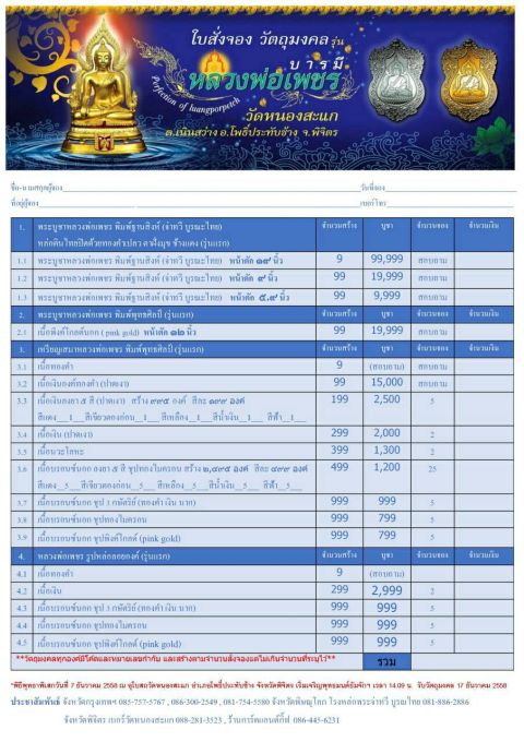 **รับวัตถุมงคลหลังวันที่ 17 ธันวาคม 2558**
