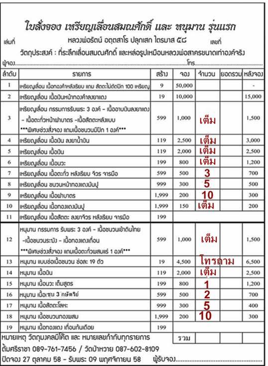 หัวข้อกระทู้ : เปิดจองเหรียญเลื่อนสมณศักดิ์และหนุมาน รุ่นแรก หลวงพ่อรัตน์ วัดป่าหวาย (ราคาวัดค่ะ)
