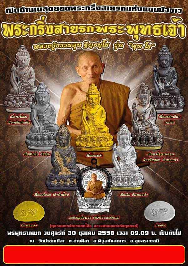 เปิดจอง หลวงปู่ธรรมลุน รุ่นพุทโธ พิธีพุทธาพิเษก วันศุกร์ที่ 30 ตุลาคม 2558 ณ.วัดป่าอ่างศิลา จ.อุบลราชธานี ต้องการรายการใหน สอบถามได้ครับ มีทุกรายการ