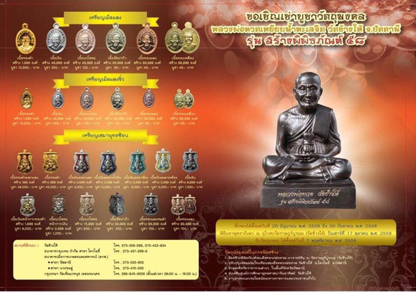 1.เหรียญพุฒซ้อนเนื้อเงินหน้ากากทอง มียอด 1 เหรียญ ๆ ละ 15000