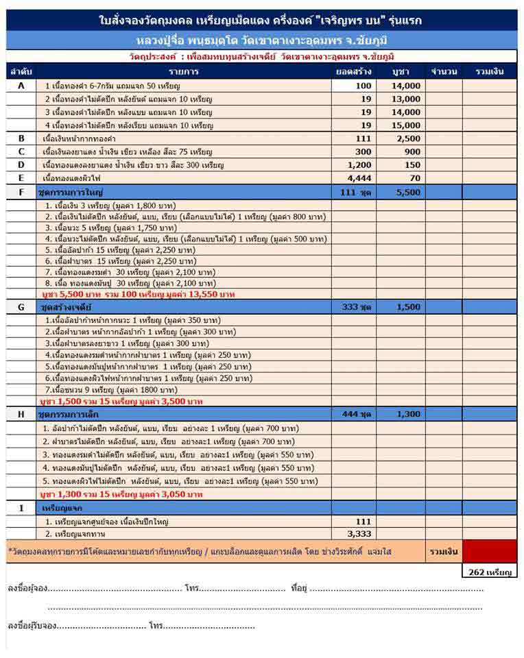 H. ชุดกรรมการเล็ก รับพระ 15 เหรียญ--------->ชุดละ 1300 บาท--------->มียอด 4 ชุด