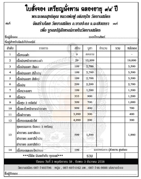 11.เนื้อฝาบาตร จอง 300 บาท มียอด 30 องค์