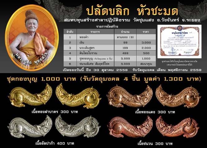 กองบุญที่ 2 ,3 ,4 , 5 เป็นต้นไปจะได้หัวชะมด 4 + 1ตั้งแต่ชุดที่2ขึ้นไปครับ