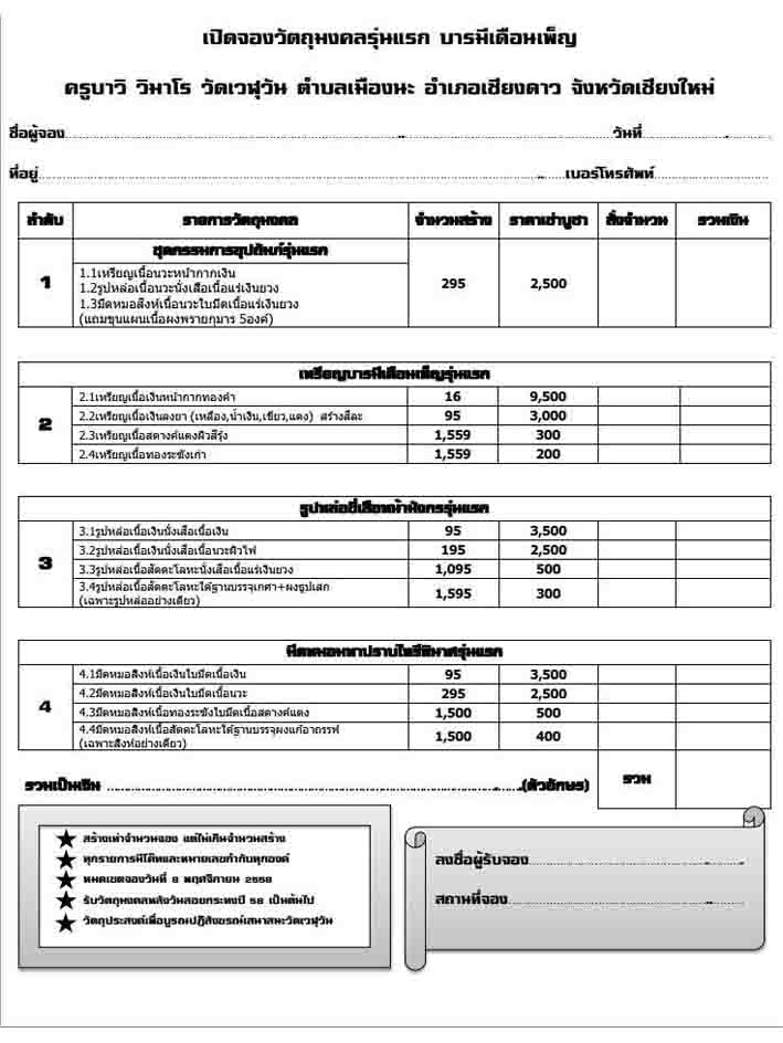 [[[เปิดจอง]]]วัตถุมงคล รุ่นแรก ครูบาวิ วัดเวฬุวัน อำเภอเชียงดาว จังหวัดเชียงใหม่