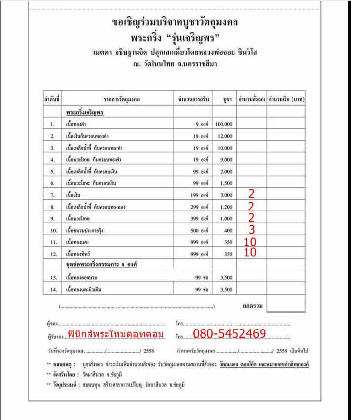 หัวข้อกระทู้ : : เปิดรับจอง หลวงพ่อจอย ชินวังโส วัดโนนไทย พระกริ่ง “รุ่นเจริญพร”