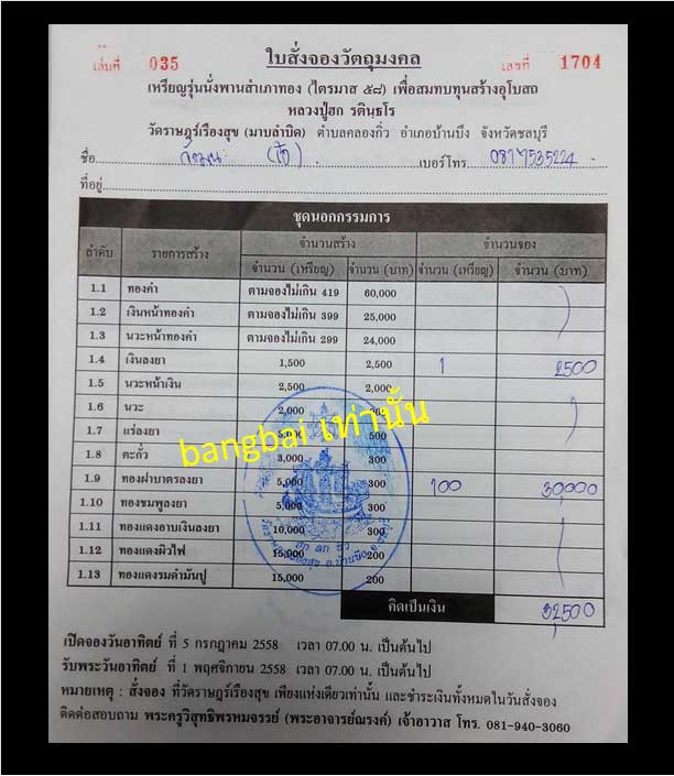 ทุกรายการที่เปิด มีใบจองตัวจริงครับ ดูได้จากใบจอง รับประกันได้รับพระแน่นอนครับ