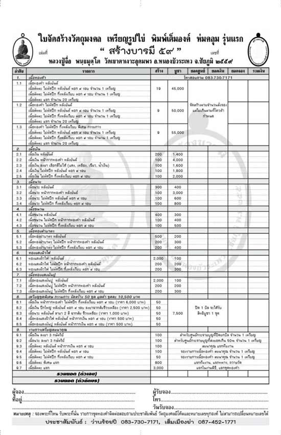 3.2 เนื้อนวะหน้ากากทองคำหลังยันต์ มียอด 1 เหรียญ ราคาเหรียญละ 3,000 บาท
