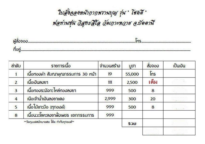 หัวข้อกระทู้ : จองหน้ากากพรานบุญ รุ่น โชคดี พ่อท่านซุ่น วัดเกาะหวาย จ.ปัตตานี ราคาวัดค่ะ