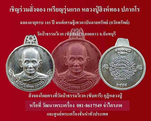 หัวข้อกระทู้ : เปิดจอง เหรียญรุ่นแรก หลวงปู่สิงห์ทอง อายุ 104 ปี วัดซับตารี จ.จันทบุรี
