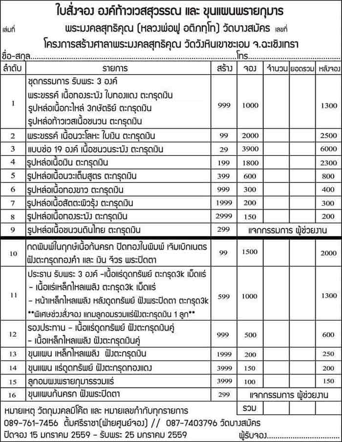 ปิดจอง 15 มกราคม 2559 รับพระ 25 มกราคม 2559
