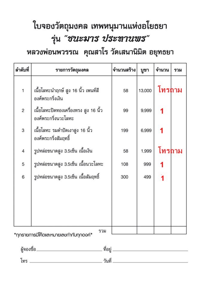 เปิดให้จองตามรายการ ราคาวัดค่ะ