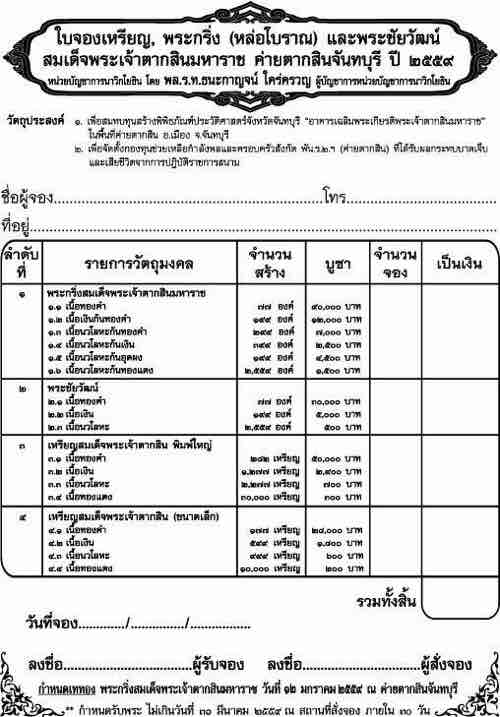 โอนเงินเพื่อสั่งจองบูชา ภายใน 1 วัน หลังจากปิดจอง ได้ที่