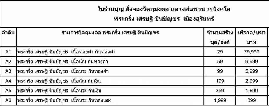 ขายใบจอง พระกริ่ง เศรษฐีชินบัญชร หลวงพ่อพวน วรมังคโล วัดช้างหมอบ จ.สุรินทร์