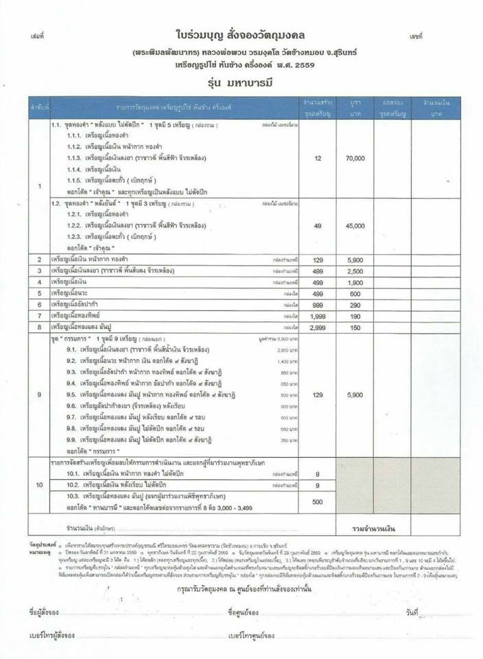 สั่งจองราคาวัด+ค่าจัดส่ง100บาทต่อท่าน