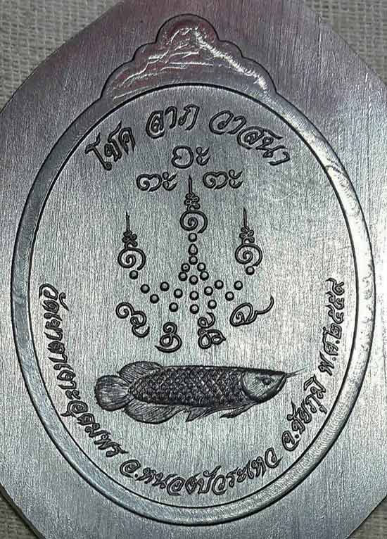 รูปแบบเหรียญ ด้านหน้าเป็นแบบห่มคลุมครึ่งองค์ ด้านหลังมียันต์ของหลวงปู่และมี ปลามังกร