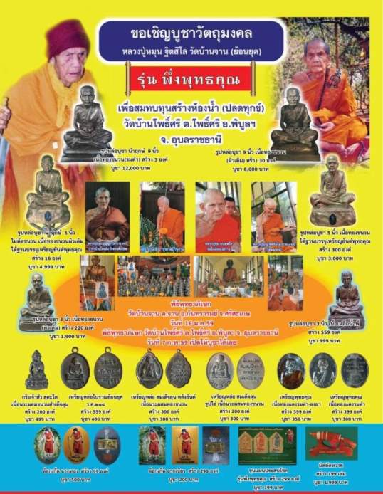 เปิดจองแล้วครับ เป็น ๑ บ่มี ๒ กับสุดยอดวัตถุมงคล ปี ๕๙ กับ หลวงปู่หมุน ฐิตสีโล วัดบ้านจาน ศรีสะเกษ รุ่นพึ่งพุทธคุณ
