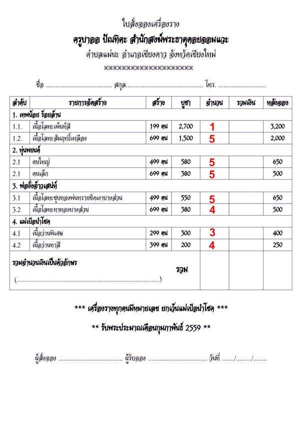 รับวัตถุมงคลประมาณ กุมภาพันธ์ 2559