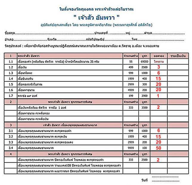 ตามรายการ ราคาวัดค่ะ