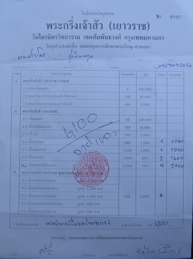 รายการที่เปิดจองและราคา กริ่งเจ้าสัว(เยาวราช) วัดไตรมิตร
