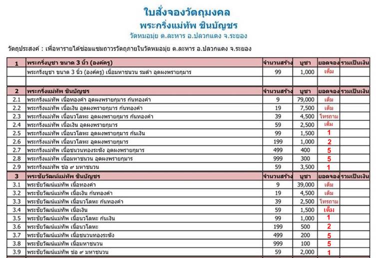เปิดจองพระกริ่ง+พระชัยวัฒน์ (แม่ทัพ) ชินบัญชร +พระปิดตานางพราย และพระขุนแผนผงพรายกุมาร (แม่ทัพ) งานผ้าป่า 59 วัดหมอมุ่ย อ.ปลวกแดง จ.ระยอง