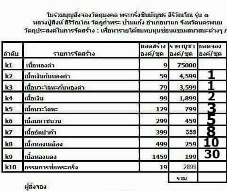 เปิดจอง พระกริ่งชินบัญชร สิริวัณโณ รุ่น๑