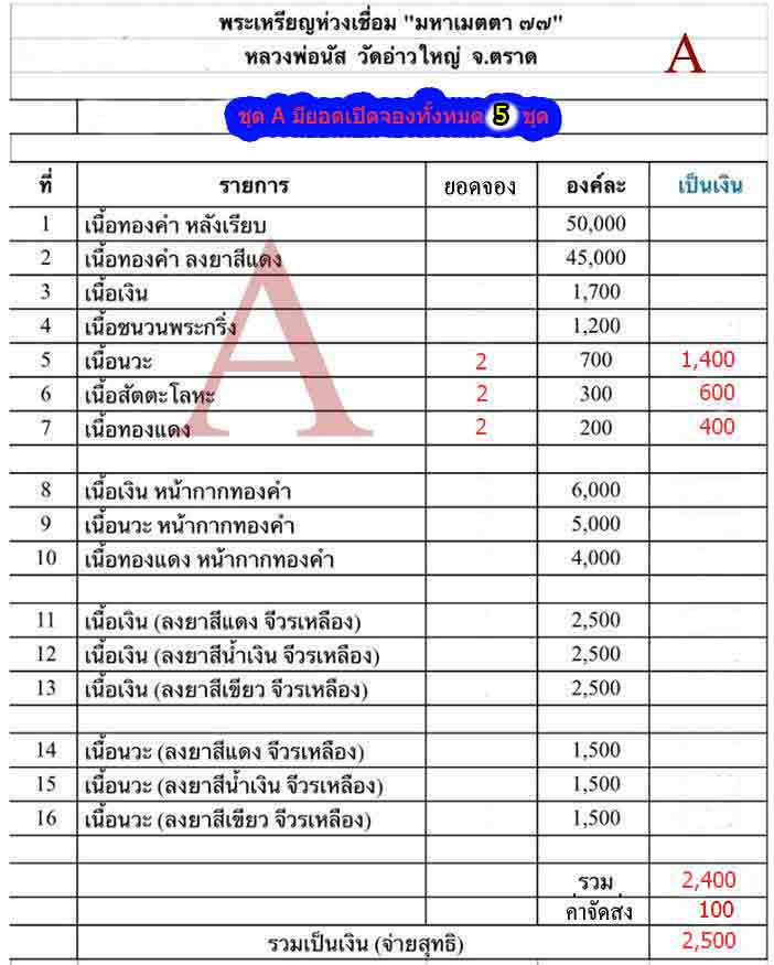 ปิดชุด A มีจำนวน 4 ชุด