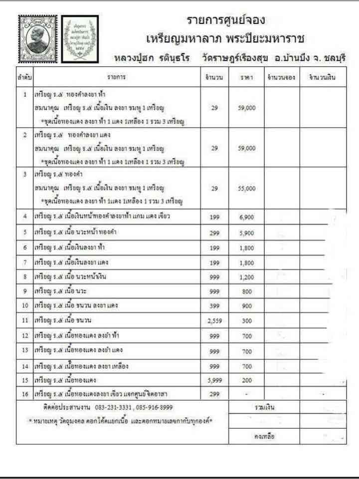 ยอดสั่งจอง หลวงปู่ฮก รุ่น ร.๕ มหาลาภ