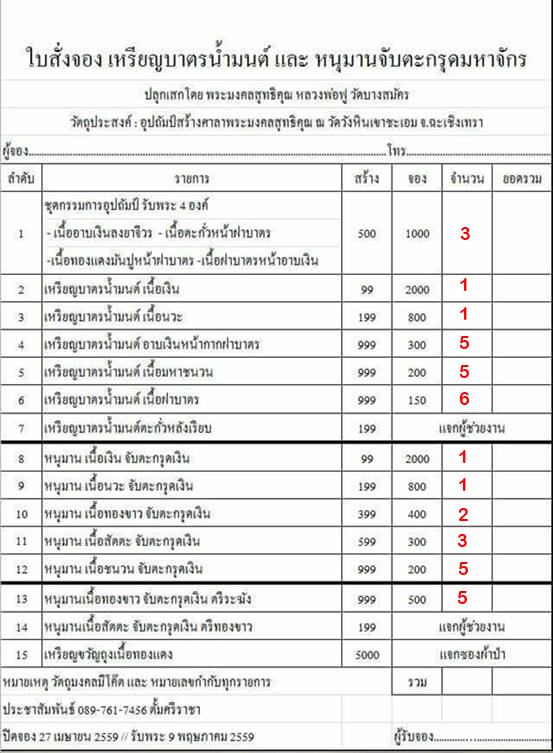 รับวัตถุมงคล ตั้งแต่ 9 พฤษภาคม 59