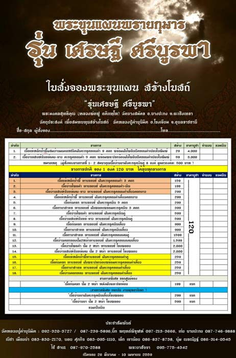-รายการนำฤกษ์ มีแค่ 2 รายการ องค์ละ 4000 และ 3000 (ของแถมสุดคุ้ม) สอบถามมก่อนครับ
