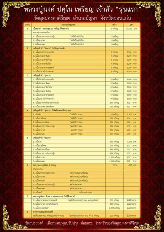 บูชาสั่งจองราคาวัดทุกรายการ + ค่าจัดส่ง EMS ๑๐๐ บาท