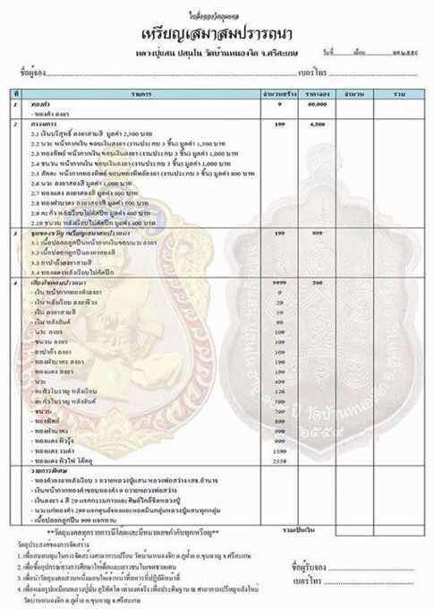 รายการที่ 4 เสี่ยงโชคสมปรารถนา องค์ละ 400 บาท มี 20 องค์