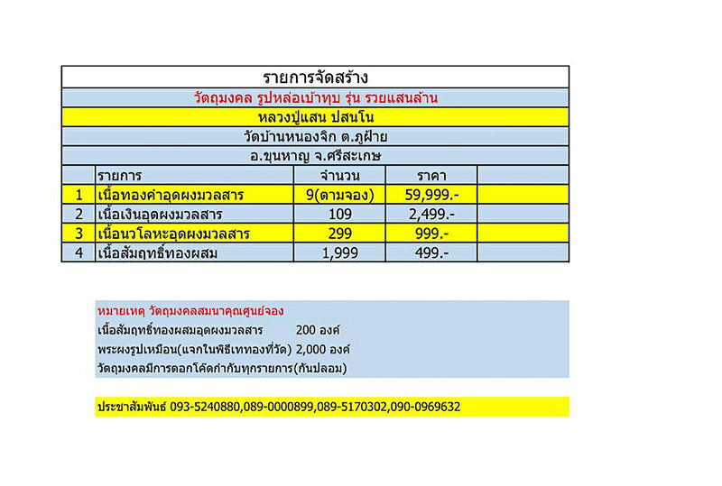 ....เนื้อสัมฤทธิ์ทองผสม ราคา 499 บ. มียอด 25 องค์