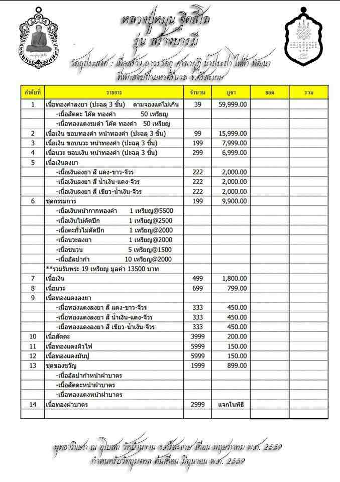 6. ชุดกรรมการ (รับพระ 19 เหรียญ) มี 1 ชุดๆละ 9,900