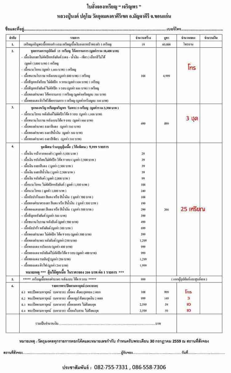 รายการที่4 ชุดพิเศษร่วมบุญลุ้นเนื้อโค๊ดพิเศษมียอด 25เหรียญเหรียญละ 200บาท