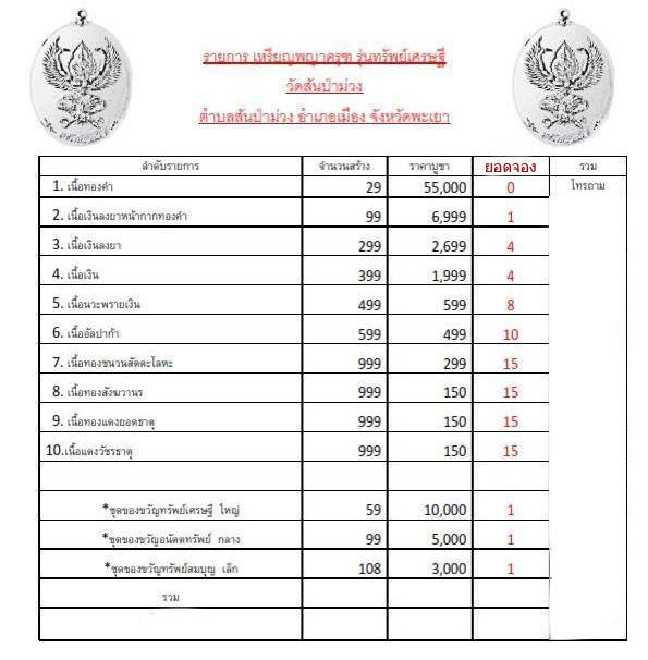 ยอดจองมีตามรายการ