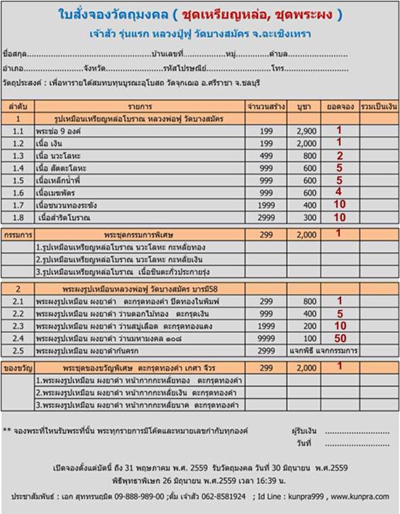 กำหนดรับรับวัตถุมงคลตั้งแต่ 30 มิ.ย 59