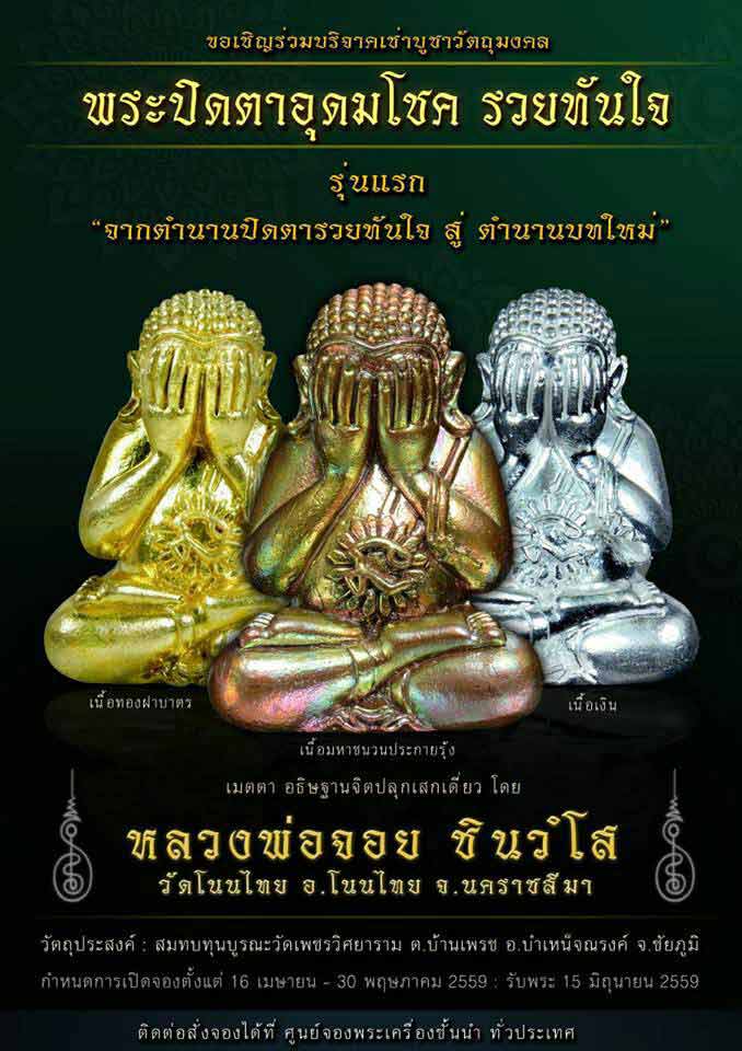 [[[เปิดจอง]]]ปิดตารุ่นแรก พระปิดตาอุดมโชค รวยทันใจ หลวงพ่อจอย ชินวโส วัดโนนไทย อ.โนนทัย นครราชสีมา 2559