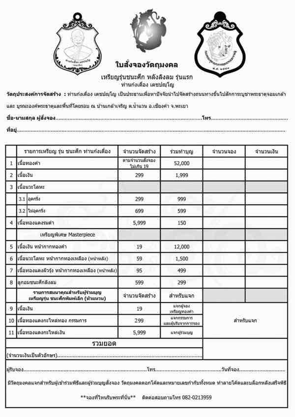 โอนเงินเพื่อสั่งจองบูชา ภายใน 1 วัน หลังจากปิดจอง ได้ที่