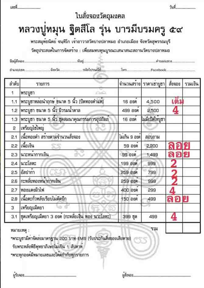 @@@...รายการไหนไม่มีลงยอด สามารถจองได้ครับ ยกเว้นบูชานำฤกษ์เต็ม...@@@