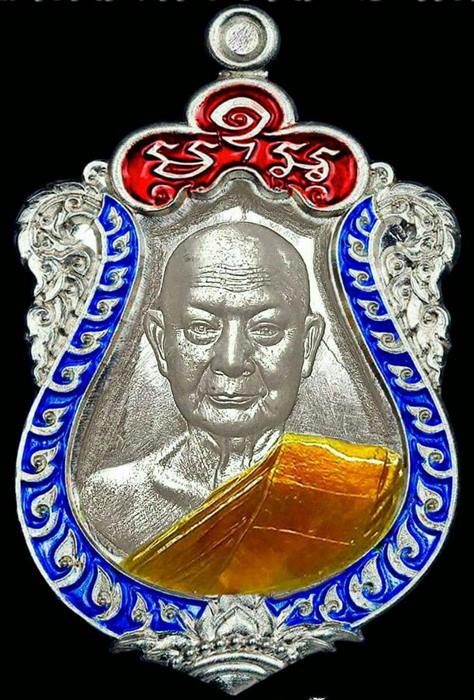 รายการที่ 3. เนื้อนวะลงยา 3 สี ขอบแดง บนน้ำเงิน จีวรเหลือง