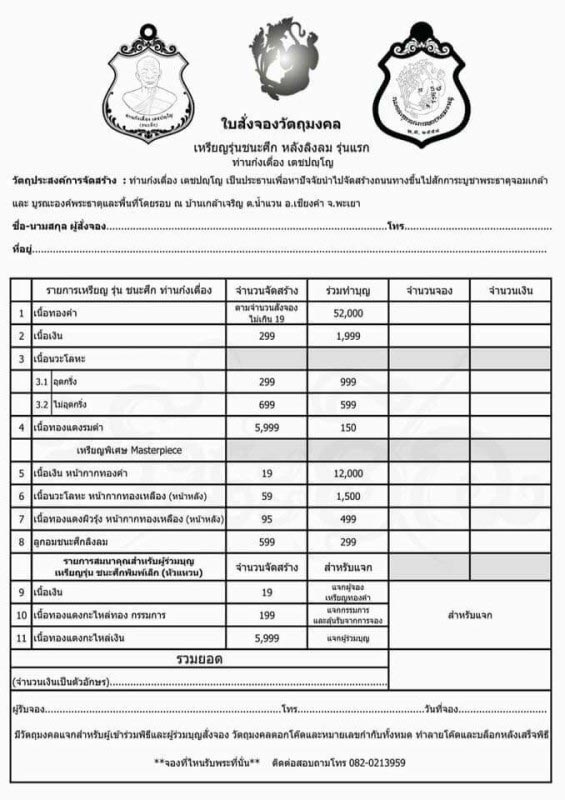 ท่านที่จองมูลค่ารวม 1000 ขึ้นไปมีหัวเเหวนเเจก 1 เหรียญ