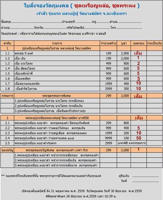 กำหนดรับรับวัตถุมงคลตั้งแต่ 30 มิ.ย 59