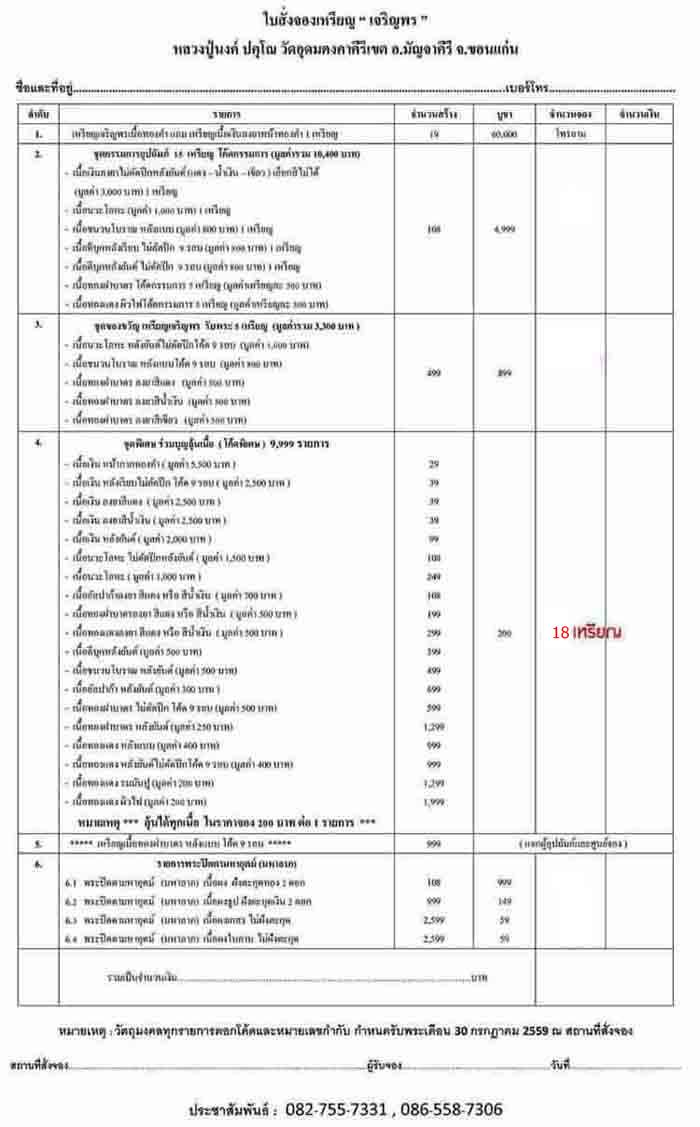 รายการที่4 ชุดพิเศษร่วมบุญลุ้นเนื้อโค๊ดพิเศษมียอด 18เหรียญเหรียญละ 200บาท